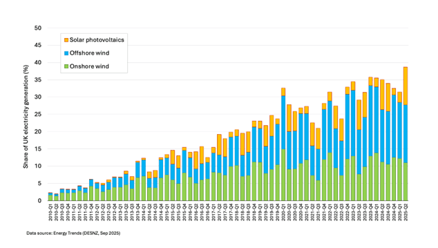 Energy Trends, UK, April to June 2025, Statistical Release (UK DESNZ, 30 Sep 2025)